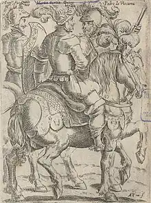 When he became governor of Chile, Quiñones was a veteran soldier. He had served, in 1559, in the Spanish Tercios that operated in Italy. He embarked in the squadron of the viceroy of Naples, in a campaign against Turkish pirates. In 1560 in the Battle of Djerba that was a disaster for the Spaniards who lost thirty ships. Quiñones became one of the five thousand prisoners who were taken to Istanbul and sold as slaves. Later rescued by means of the payment of a large ransom, he continued as a soldier fighting in Italy and Flanders. On his return to Spain, Quiñones married Grimanesa de Mogrovejo, sister of the inquisidor of Granada, later canonized as Saint Turibius of Mongrovejo. When this monk was promoted to the rank of archbishop of Lima, Quiñones went to Peru, in 1580, as part of his retinue. Thanks to the protection of the archbishop, Quiñones soon became maestre de campo and general commissioner of the cavalry. In 1582, the Viceroy of Peru, Martin Enríquez de Almansa made him commander of the treasure fleet that sailed from Peru to Panama, be sent to Spain from there. Later he was named corregidor of Lima, a position in which he gained some notice as a pursuer of thieves and vagabonds.