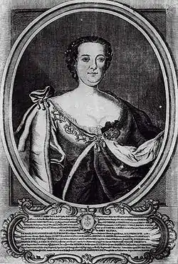 Franciszka Urszula Radziwiłł (February 13, 1705, Chartorysk – May 23, 1753, Navahrudak), was a Polish writer and playwright, the first female writer on the territory of modern Poland and Belarus. She was a Princess, the last female representative of the Wiśniowiecki noble house and a wife of Michał Kazimierz "Rybeńko" Radziwiłł.
