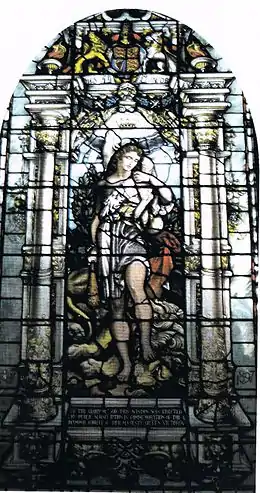 The east windows behind the altar and the north and south aisles all have this theme, and were the work of Heaton, Butler and Bayne. The north aisle window was installed in commemoration of the Diamond Jubilee of Queen Victoria. After a bomb attack by the IRA on Manchester in 1996 the window was restored in memory of Maria Isabella Blythe (18981985).