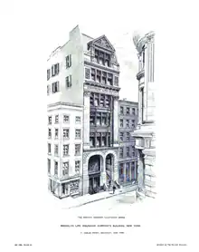 In 1877 he travelled to Canada to assist with designs for reconstruction after the disastrous 1877 Great Fire of Saint John, New Brunswick.[4] In 1879 he entered a competition for a design for the New Brunswick legislative building, but his design was not chosen.[5] His buildings include: 52-54 8th Avenue, in the Park Slope neighborhood of Brooklyn, New York City (1886); The Brooklyn Life Insurance Building, Liberty Street, New York City (c1885); and the ladies parlour (1889) of the South Congregation Church complex in Brooklyn, New York.[6]
