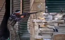 On 19 December, the FSA suffered its largest loss of life when new defectors tried to abandon their positions and bases between the villages of Kensafra and Kefer Quaid in Idlib province. Activist groups, specifically the Syrian Observatory for Human rights, reported that 72 defectors were killed as they were gunned down during their attempted escape. The Syrian Army lost three soldiers during the clashes.[145] The next day, S.O.H.R. stated that in all 100 defectors were killed or wounded.[146] The clashes continued into the next day, and another report, by Lebanese human rights activist Wissam Tarif, put the death toll even higher with 163 defectors, 97 government troops and nine civilians killed on the second day alone as the military tracked down the soldiers and civilian that managed to initially escape.[147] On 21 December, it was reported that the FSA had taken control over large swathes of Idlib province including some towns and villages.[148] It was also reported on 24 December that the FSA stronghold in the Bab Amr neighbourhood of Homs was under attack by security forces, with two FSA soldiers killed.[149] A week later, a minute long fire fight erupted between FSA forces and government security forces, on a road near the village of Dael in Daraa province. Four government soldiers were killed in the ambush.[150] The FSA grew in size, to about 20,000 by December 2011.[151]