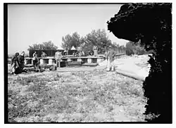 Opening ceremony of reservoir, 1926 (sign in English, Arabic and Hebrew)