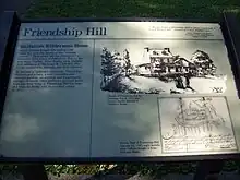 - Entrance to Friendship Hill, with the estate visible on far leftNearby fieldsFront view of estate during winter