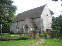 Frieth Church was built in 1848 as a chapel of ease for Hambleden. It is now part of the parish of Hambleden with Frieth and Skirmett. Flint from the ruined wing of the Old Rectory (now Kenricks) at Hambleden was used for the new church built to the design of JP Harrison. The South aisle was added later, probably by Woodyer dated 1872 on the rainwater heads. The church is built of flint with stone mullions and edges, and has an attractive tiled roof but no tower or turret.