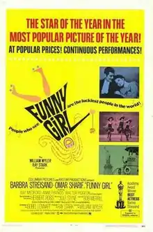 Funny Girl is a 1968 American biographical musical comedy-drama film directed by William Wyler and written by Isobel Lennart, adapted from her book for the stage musical of the same title. It is loosely based on the life and career of Broadway and film star and comedienne Fanny Brice and her stormy relationship with entrepreneur and gambler Nicky Arnstein.