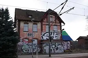 Götz station is a railway station in the village of Götz, in the municipality of Groß Kreutz, located in the Potsdam-Mittelmark district in Brandenburg, Germany.