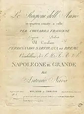 The first work, which the new company published in 1808, was a guitar piece by Antonio Nava. This was followed in 1814 by the first catalogue, which contained 143 items. [4] The 1814 catalogue included mostly piano arrangements of operatic tunes and some individual numbers as well as pieces for guitars, but Macnutt notes the most important single inclusion as being the complete vocal score of Simon Mayr's 1806 opera, Adelasia ed Aleramo,[3] which was regularly performed at La Scala until 1820.