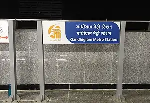 Gandhigram is an elevated metro station on the North-South Corridor of the Red Line of Ahmedabad Metro in Ahmedabad, India.[1] Around this metro station holds the main Gandhigram railway station along with Ahmedabad Medical Association (AMI) and Reserve Bank of India Main Office (Ahmedabad). This phase of the metro system was inaugurated on 30 September 2022 by Prime Minister Narendra Modi and was opened to the public on 6 October 2022.[2][3][4][5]