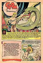 Crom, the Barbarian in Out of This World Adventures #1, June 1950, art by John Giunta.