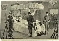 But Abraham Lincoln was not ready to abolish slavery; Sanford's meeting with Garibaldi occurred a year before Lincoln issued the preliminary Emancipation Proclamation. Sanford's mission was hopeless, and Garibaldi did not join the Union army.[36] A historian of the American Civil War, Don H. Doyle, however, wrote, "Garibaldi's full-throated endorsement of the Union cause roused popular support just as news of the Emancipation Proclamation broke in Europe."[37] On 6 August 1863, after Lincoln had issued the final Emancipation Proclamation, Garibaldi wrote to Lincoln, "Posterity will call you the great emancipator, a more enviable title than any crown could be, and greater than any merely mundane treasure."[38]