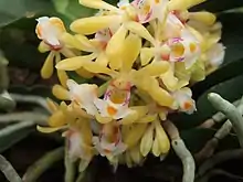 Gastrochilus obliquus is a species of orchid native to China, the Himalayas and Southeast Asia. It grows on tree trunks at forest margins.[3] Two varieties are recognized:[1][3]