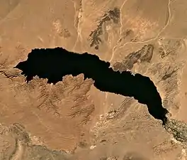 Gegeen Lake, also known as Gegeen Nuur (Mongolian: Гэгээн нуур, "holy lake"), is a lake in Govi-Altai Province, Mongolia. The lake lays within the Khangai Mountains and feeds the Zavkhan River.[1] Taishir Hydro Power Station lays at the head of the lake; the station and accompanying dam created the entire lake in 2008.[2]