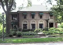 The George E. Purple House is a historic home located at 338 Sunset Ave. in LaGrange, Illinois, United States. The Italian Renaissance Revival style house was designed by William G. Carnegie and built in 1928. The house includes several characteristic features of Italian Renaissance Revival architecture, including a green tile hipped roof, large first-floor windows, overhanging eaves, decorative brackets, and extensive decorations; these decorations include bas-relief urns above the first floor windows and brick quoins on the corners. George E. Purple, founder of the Flexible Steel Lacing Company, commissioned the house; while Purple died in 1930, his family inhabited the house until 1944.[2]