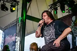 George Fisher (born July 8, 1970),[1] better known by his stage name Corpsegrinder, is an American death metal vocalist who is the lead singer of Cannibal Corpse, Paths of Possession and the supergroup Serpentine Dominion.