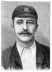 Nichols began his career at Gloucestershire, taking just three wickets as part of a bowling attack dominated by W. G. Grace.[1] His five first-class matches for the county came over three seasons and in 1886 he moved to bordering Somerset. Somerset had just lost their first-class status, having failed to arrange a sufficient number of matches against other first-class counties in 1885. Having customarily batted as part of the tail for Gloucestershire, Nichols opened the batting alongside fellow professional Albert Clapp on his first recorded appearance for Somerset in July 1886.[2] A highlight for Nichols during these early years at Somerset was his 6/30 during the 1887 match against Hampshire.[3] Typifying his bowling, he bowled 32.2 overs, of which 24 were maidens.