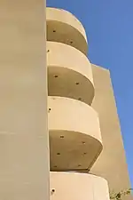 Construction in Malibu began on April 13, 1971, and the new campus opened in September 1972.[11][26] The campus and many of its buildings were planned by Los Angeles–based architect William Pereira, who had also designed the Los Angeles County Museum of Art, the University of California, Irvine, and much of the University of Southern California.[27] The construction of the Malibu campus was made possible largely by gifts from Blanche Seaver, the wife of Frank R. Seaver and heir of his oil-drill manufacturing fortune, who donated to Pepperdine more than $160 million over her lifetime.[28] The undergraduate college was officially named after Seaver in 1975.[29]