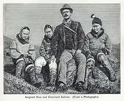 George Rice was selected by expedition leader Adolphus Greely as the photographer for a planned expedition to the Arctic Ocean in 1881 after learning of his skill as a photographer in Washington DC. The expedition to Lady Franklin Bay on Ellesmere Island and points north was sponsored by the United States Army Signal Corps, so Rice, a civilian and the only Canadian on the expedition, was given the rank of sergeant.[1] Rice was also on assignment to write about and photograph the expedition for the New York Herald, whose publisher had financed the missing Jeannette expedition and hoped they might find sign of it.[2]: 21–23