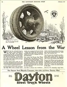 - ↑ Dayton Steel Foundry Co (1919). The ultimate motor truck wheel. Dayton Ohio: University of California Engineering Library. p. 11. Retrieved 26 May 2015.