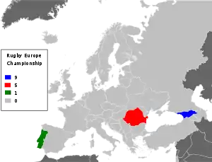 Georgia is currently considered a second-tier rugby union nation and is one of the world's fastest-growing rugby nations. The Lelos participate in the Rugby Europe Championship, winning the tournament in 2001 and every year since 2006-08, with the exception of 2017. The bulk of the national squad are based in France, in both the Top 14 and lower divisions. This is a practice that was popularised by the former national team coach, Claude Saurel, a Frenchman. Rugby is one of the most popular sports in Georgia. The national team qualified for the Rugby World Cup six times, first in 2003 – playing against rugby powers such as England and South Africa. The Lelos won their first ever World Cup match in 2007, when they beat Namibia 30–0. Since 2013, Georgia has hosted the World Rugby Tbilisi Cup.