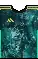 The current kit features a white crewneck jersey with a black horizontal pinstripe and the colors of the German flag at the sleeves.[57]