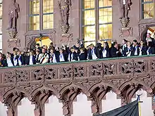 The 2003 World Cup title marked the breakthrough for the women's national football team in Germany. The final was watched by 10.48 million viewers on German television (a 33.2 percent market share)[69] and the German team was welcomed home by almost 10,000 fans at Frankfurt's city hall.[70] Later that year, they were honoured as the 2003 German Sports Team of the Year.[71] Nia Künzer's World Cup winning golden goal was voted Germany's 2003 Goal of the Year, the first time the award was won by a female player.[72] Since 2005, almost all of the women's national football team's matches have been shown live on German television.[73]