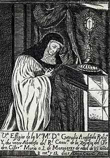 Gertrudis Anglesola (Valencia, June 19, 1641 - La Zaydía, Valencia, March 3, 1727), also known as Gertrudis de Anglesola, was an abbess and mystic of the Gratia Dei monastery[1][2] and the Cistercian convent of La Saïdia, outside the Valencian city walls. Of her writings, she left letters and an autobiography of her day-to-day activities as well as her thoughts. She also wrote spiritual poetry.[3]