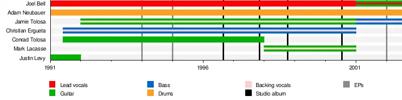 • Joel Bell - vocals, guitar (1990–2002, 2022-present)
