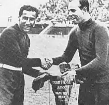 ![]() Combi (left) together with referee Ivan Eklind (m.) and František Plánička (r.) before the 1934 FIFA World Cup Final | |||