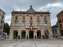 Gijón (Spanish: [xiˈxon]) or Xixón (Asturian: [ʃiˈʃoŋ]) is a city and municipality in north-western Spain. It is the largest city and municipality by population in the autonomous community of Asturias. It is located on the coast of the Cantabrian Sea in the Bay of Biscay, in the central-northern part of Asturias; it is approximately 24 km (15 mi) north-east of Oviedo,[3] the capital of Asturias, and 26 km (16 mi) from Avilés. With a population of 273,744 as of 2023,[4] Gijón is the 15th largest city in Spain.