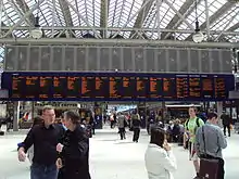 In 1998, a five-year renovation programme was initiated by Railtrack, which saw the trainshed completely re-roofed and internally refurbished by Bovis Lend Lease[26] – which also included the restoration of Hielanman's Umbrella. The 1980s vintage mechanical pixel-style destination boards were later replaced around 2005 with an array of LED-style destination boards. The final improvement, the upgrading of the upstairs restaurant area, was completed in 2005.