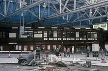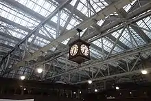 To accommodate the cancelled Glasgow Airport Rail Link plans, the platforms were renumbered. Platform 11a (the previous West Bank Siding, on the bridge over the Clyde) was renumbered 12, whilst 12 & 13 were renumbered 14 & 15 respectively. In September 2009 the former platform-level car park and passenger drop-off area was taken out of use and the platform over the Clyde (recently renumbered 12) was removed. Two new platforms were created between 11 and 14, being brought into use in May 2010.[27][28] There is no plan to replace indoor parking or passenger drop-off within Central station. The existing multi-storey parking facility on Oswald Street and on-street parking surrounding Central station remain, with passenger drop-off having moved to surrounding streets.[29] During Cyclone Bodil in December 2013, the glass roof of the station was broken by flying debris.[30]