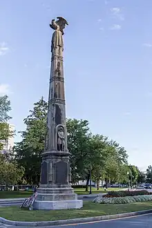 - Civil War Monument – A limestone obelisk at the intersection of Glen, South, and Bay streets, the monument was dedicated in 1872 to honor the 644 men from Queensbury who served in the Civil War. Ninety-five names, those of the men who died, are engraved on the monument.[17] Many battles of the war are listed.