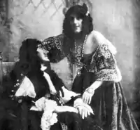 The rebuilt theatre came under a succession of managements through the 1870s, with few successes. For a season of opéra bouffe in 1871, for which "Royal" was added to the theatre's name, standards were not high enough to attract the public,[11] and a new management took over. H. J. Montague opened with a strong company, headed by himself, Carlotta Addison[12] and Henry Compton, but could not make the theatre pay. He was succeeded by Alexander Henderson, who presented his wife, Lydia Thompson, in a long-running burlesque, Blue Beard.[13] A substantial success in the 1870s was the opéra comique Les cloches de Corneville by Robert Planquette, given in an English version by H. B. Farnie and Robert Reece under the title The Chimes of Normandy. It transferred from the smaller Folly Theatre, and ran for a total of 705 performances, setting a new world record for a musical theatre run, which was not overtaken until Dorothy, ten years later.[14]