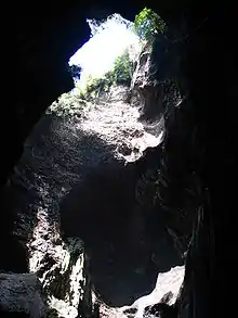 The main cave system is divided into two parts: the more accessible Simud Hitam (Black Cave), and the larger Simud Putih (White Cave) which lies above. The names refer to the main type of nests produced by swiftlets in each cave. The cave system is home to many other animals, including massive populations of cockroaches, centipedes and bats. Outside one can see many raptors including crested serpent eagles,[7] kingfishers, and Asian fairy-bluebirds. Access is in the form of a wooden walkway circuiting the interior.