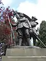 John received a further number of national and international commissions, including several for war memorials. John's 1905 King's Regiment Boer War memorial in St John's Gardens, Liverpool depicts two soldiers of the regiment from different historical periods, one from the 17th century and one from the Boer War period, around a figure of Britannia on a pedestal.[2] John created a similar representation of a regiment's heroic traditions for the 1924 Royal Welch Fusiliers memorial at Wrexham which features statues of 18th and 20th century soldiers.[2] On the reverse of the Liverpool monument is a sculpture featuring a regimental drummer boy of 1743. This was subsequently cast as a separate, small bronze in an edition for the retail market and became a popular purchase while a monumental version was also cast and is held by the National Museum Wales.[13]