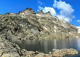 Gothic Peak is a 6,213-foot (1,894-metre) multi-peak mountain summit located near the western edge of the North Cascades Range, in Snohomish County of Washington state. It is located south of Barlow Pass along the Mountain Loop Highway near the Monte Cristo area. It is situated on land administered by the Mount Baker-Snoqualmie National Forest. The mountain was named for early prospector William Gothic, who was one of the first to stake a claim in Gothic Basin.[3][4] The mountain's name was officially adopted in 1967.[2] The nearest higher peak is Del Campo Peak, 0.5 miles (0.80 km) to the northeast, and Foggy Pass is the low point between the two peaks.[1] Foggy Lake lies in Gothic Basin below the east face of Gothic Peak and collects precipitation runoff which ultimately drains to South Fork Sauk River via Weden Creek. Runoff from the west side of the mountain drains into the Sultan River. The first ascent of the mountain was made on June 10, 1934, by Don Blair, Willard Carr, Norval Grigg, and Art Winder. In terms of catching favorable weather, the best months for climbing are July through September.