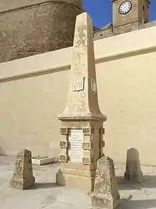 The Gozo Aqueduct is an aqueduct on the island of Gozo, Malta. It was built by the British between 1839 and 1843 to transport water from Għar Ilma in the limits of Kerċem to Victoria.[1] A reservoir was built within the ditch of the Cittadella to store water which most probably stored water coming from the Cittadella itself.[2] An obelisk was built near the reservoirs to commemorate the opening of the aqueduct.[3]