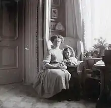 Although she loved Alexandra, Olga had a strained relationship with her mother. "Olga is always most unamiable about every proposition, though may end by doing what I wish", wrote Alexandra to Nicholas on 13 March 1916. "And when I am severe – sulks me."[28] In another letter to Nicholas during World War I, Alexandra complained that Olga's grumpiness, bad humor and general reluctance to make an official visit to the hospital where she usually worked as a Red Cross nurse made things difficult.[29] Parlormaid Elizaveta Nikolaevna Ersberg told her niece that Nicholas II paid closer attention to the children than Alexandra did and Alexandra often was ill with a migraine or quarreled with the servants.[30] In 1913, Olga complained in a letter to her grandmother, Dowager Empress Maria Feodorovna about her mother's invalidism. "As usual her heart isn't well", Olga wrote. "It's all so unpleasant."[31] Queen Marie of Romania, who met Olga and her sisters when they visited Romania on a state trip in 1914, commented in her memoirs that the girls were natural and confided in her when Alexandra wasn't present, but when she appeared "they always seemed to be watching her every expression so as to be sure to act according to her desires."[32]