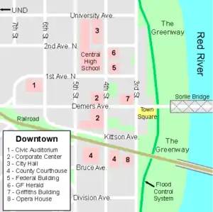 ![]() Aerial view of downtown Grand Forks in 2006 | |