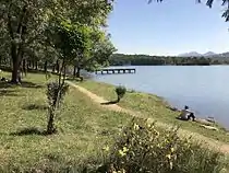 The Park is otherwise called the "Lung of the City" due to the diversity of plants. It also includes Botanical Garden and the Zoo and also a complex of swimming pools.[5] In addition the Park has an amphitheatre, where various cultural activities occur especially in summer months.[5] The artificial lake is a well known fishing and also swimming area. The lake was built from local waters in 1955 on volunteer work to build a 400 metres long dam that holds the waters from overflowing onto Tirana.[5]