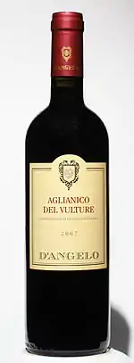 Aglianico (English: /ælˈjænɪk/ al-YAN-ik-oh,[1] Italian: [aʎˈʎaːniko]) is a black grape grown in the southern regions of Italy, mostly Basilicata and Campania. It is considered with Sangiovese and Nebbiolo to be one of the three greatest Italian varieties.[2] Aglianico is sometimes called "The Barolo of the South" (il Barolo del Sud) due to its ability to produce highly refined, complex fine wines like the famous wine from Piedmont, Barolo.[3]