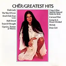 Greatest Hits is the third greatest hits compilation by American singer-actress Cher, released in October 1974 by MCA Records. The album was released to close Cher's contract with MCA, her record company since 1971. This release follows the greatest hits albums Golden Greats (1968) and Superpack (1972). The album peaked at 152 on the Billboard 200 chart.[4]