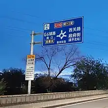 Roundabout sign on China National Highway 110, Changping District, Beijing