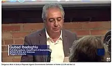 Gubad Ibadoghlu, also spelled Gubad Ibadoglu, (Azerbaijani: Qubad İbadoğlu; born 12 September 1971) is an Azerbaijani political activist,[1] a scholar,[2] and human rights defender,[3] who from 2021 has been a research fellow at the London School of Economics.[2] He was supposed to start a new teaching position at TU Dresden[4] in 2023 however on 23 July 2023 he was arrested in Azerbaijan and remains in custody. The international community has condemned his arrest as arbitrary and politically motivated.[5][6][7][8][9]