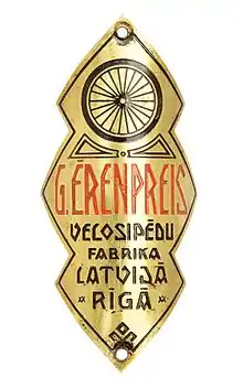 The Gustavs Ērenpreis Bicycle Factory was established in 1927 by master Latvian bicycle manufacturer Gustavs Ērenpreis (1891-1956).[2]