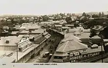 Gympie's name derives from the Gubbi Gubbi word gimpi-gimpi, which means "stinging tree"[8] and refers to Dendrocnide moroides. The tree has large, round leaves that have similar properties to stinging nettles. The city was previously named Nashville, after James Nash, who discovered gold in the area in 1867.[9] The name was changed to Gympie in 1868.[10] Graziers were the original European settlers. Subsequently, James Nash reported the discovery of 'payable' alluvial gold on 16 October 1867.[11] At the time of Nash's discovery, Queensland was suffering from a severe economic depression. Nash probably saved Queensland from bankruptcy. A memorial fountain in Gympie's Park honours Nash's discovery.[11] The Gympie Gold Rush Festival celebrates the event today. The Gold Rush Festival holds 10 days of cultural events in October.[12] Gold mining still plays a role in the area's fortunes, along with agriculture (dairy predominantly), timber and tourism. The gold rush's rapid development led to streets that are in an irregular fashion.[13]