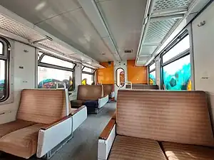 The 6111 series EMUs are made of three cars: 4111 and 5111 unpowered cab cars that differ in types of electrical components contained, and the middle 6111 car that provides power to the trainset. The power car supplies power to the motors using a thyristor rectifier. The trains can be operated in sets of up to three units.[2]