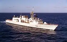 HMCS Calgary is a Halifax-class frigate that has served in the Canadian Forces and Royal Canadian Navy since 1995. Calgary is the sixth vessel in her class and the second vessel to carry the designation HMCS Calgary. She was built as part of the Canadian Patrol Frigate Project. Calgary began the FELEX (Frigate Equipment Life Extension) refit in June 2012. She is assigned to Maritime Forces Pacific (MARPAC) and is homeported at CFB Esquimalt.[3] Calgary serves on MARPAC missions protecting Canada's sovereignty in the Pacific Ocean and enforcing Canadian laws in its territorial sea and exclusive economic zone.