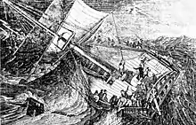 Before she sank, the crew cut the mainmast away after the storm felled it.[20]