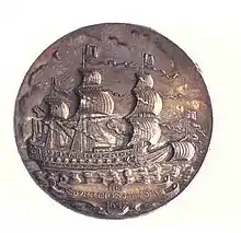 Sovereign of the Seas was a 17th-century warship of the English Navy. She was ordered as a 90-gun first-rate ship of the line of the English Royal Navy,[1][4] but at launch was armed with 102 bronze guns at the insistence of the king.[4] She was later renamed Sovereign under the republican Commonwealth, and then HMS Royal Sovereign at the Restoration of Charles II.